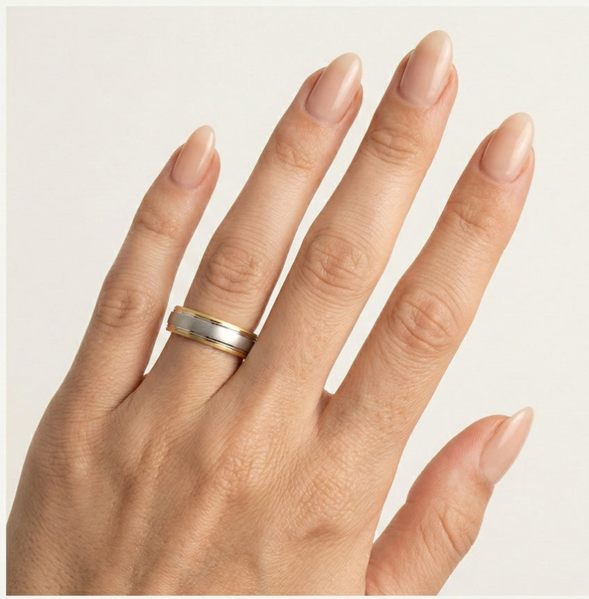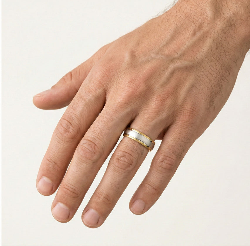 Silný zaoblený snubní prsten ze žlutého a bílého zlata