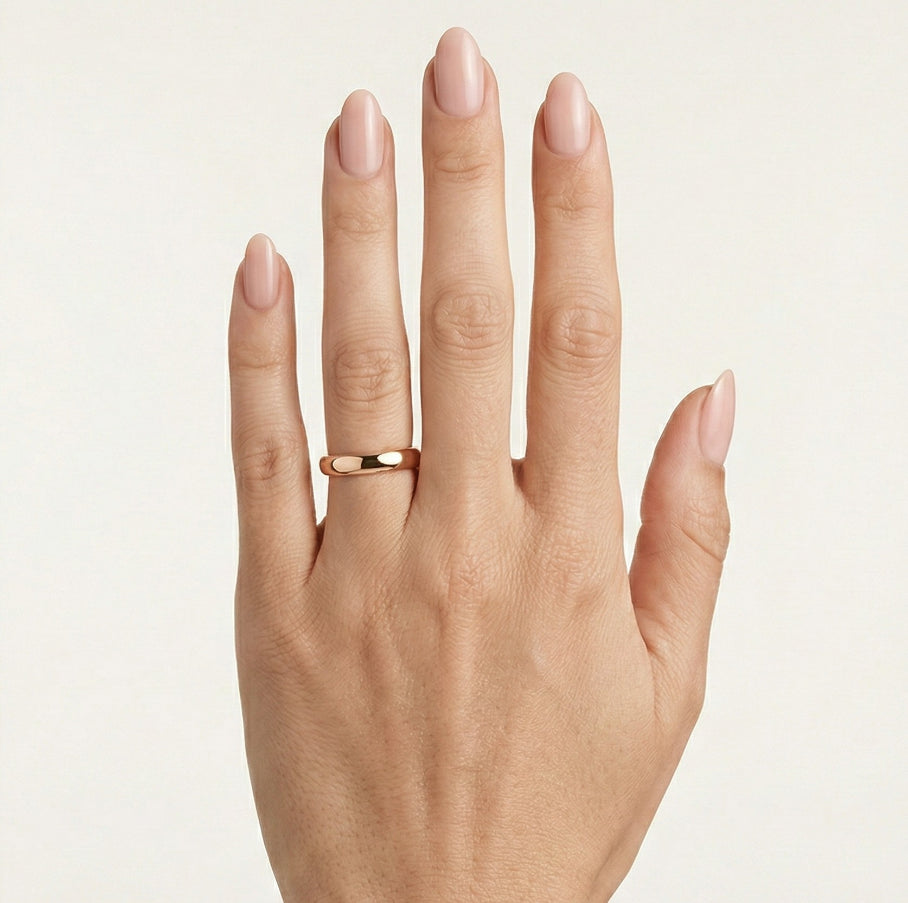 Nadčasové a elegantní snubní prsteny pro muže a ženy ze 14kt růžového zlata. Tyto prsteny mají vysoce leštěný povrch a klasický design se zaoblenými stranami. Díky 4 mm šířce nabízejí rafinovaný vzhled.