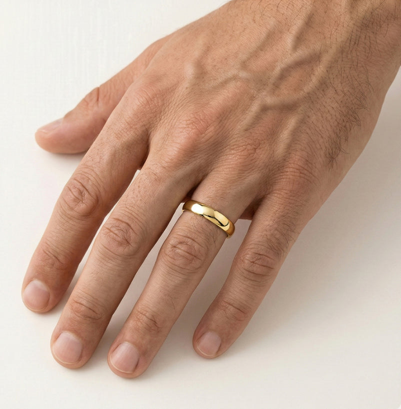 Tento elegantní snubní prsten pro muže a ženy je vyroben ze 14karátového žlutého zlata a má tloušťku 3 mm. Jeho základní kulatý tvar s hladce zaoblenými stranami z něj činí nadčasovou volbu pro každý pár, která svým klasickým designem symbolizuje trvalou lásku a závazek.