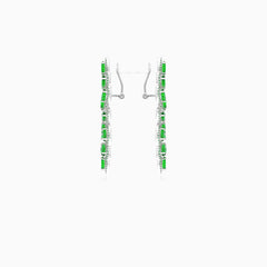 Tyto elegantní stříbrné náušnice s kapkou mají jemný listový vzor vytvořený ze syntetických smaragdů v markýzovém a kulatém jemném stupňovitém výbrusu. Každý kámen je bezpečně zasazen, což zvýrazňuje jejich zářivě zelený třpyt. Náušnice jsou doplněny spolehlivým zapínáním omega back a nabízejí pohodlí a styl pro každý rafinovaný vzhled.