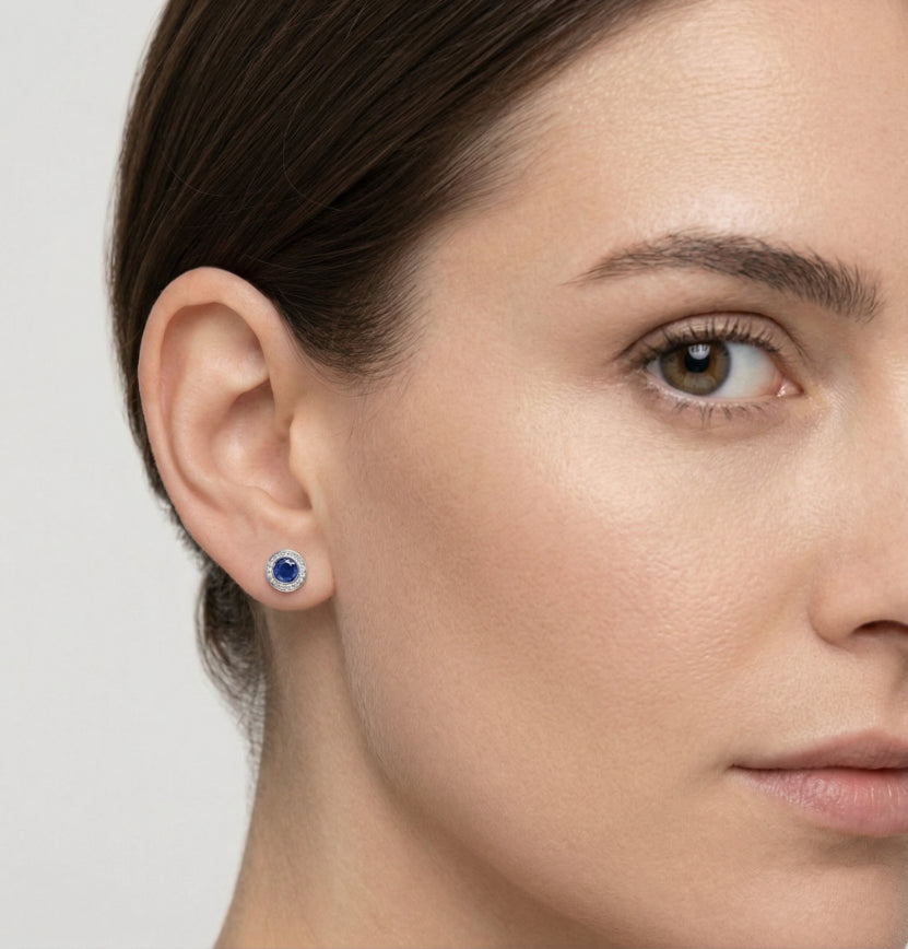 Pozvedněte svou každodenní eleganci s těmito úžasnými stříbrnými náušnicemi se svatozáří a podmanivým středovým kamenem ze syntetického safíru. Každý kulatý safír s jemným stupňovitým brusem je zasazen do elegantního rámečku a obklopen třpytivou svatozáří z vysoce kvalitních kubických zirkonů pro větší lesk. Tyto náušnice jsou vyrobeny z leštěného stříbra a nabízejí nadčasový půvab s moderním nádechem. Bezpečné puzetové zapínání zajišťuje pohodlné celodenní nošení - ideální pro každou příležitost, od běžných výletů až po večerní půvab.