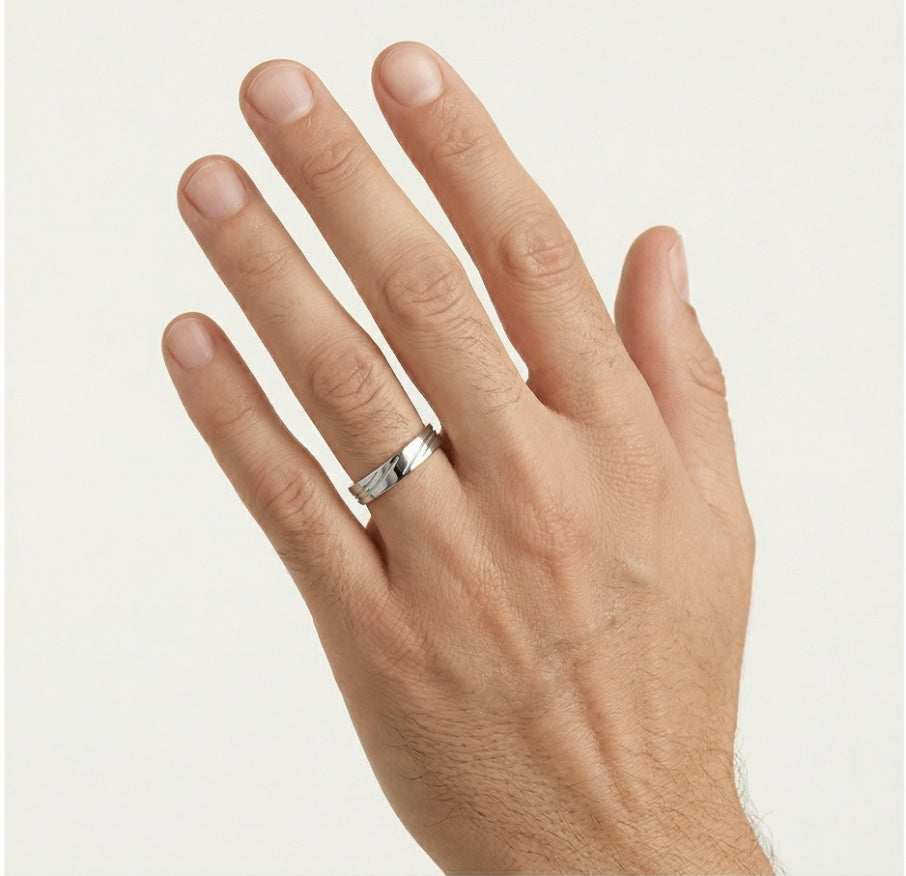 Snubní prsten z bílého zlata s vyřezávanými liniemi