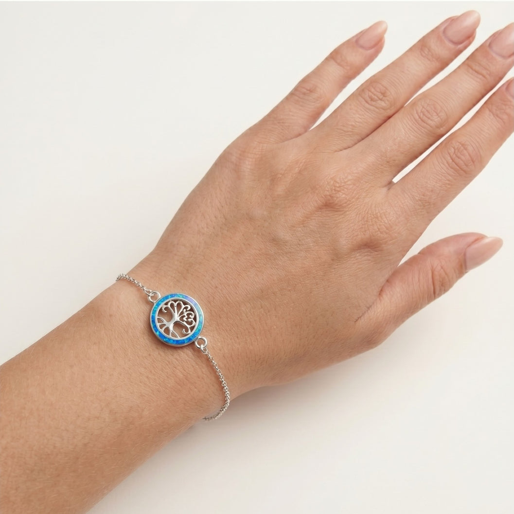 Tento stříbrný řetízkový náramek s jemným přívěskem stromu života zvýrazněným modrým opálem vám ukáže významná spojení.Humří zapínání zajišťuje bezpečné a pohodlné nošení, takže je nadčasovým doplňkem vaší sbírky šperků nebo srdečným dárkem.