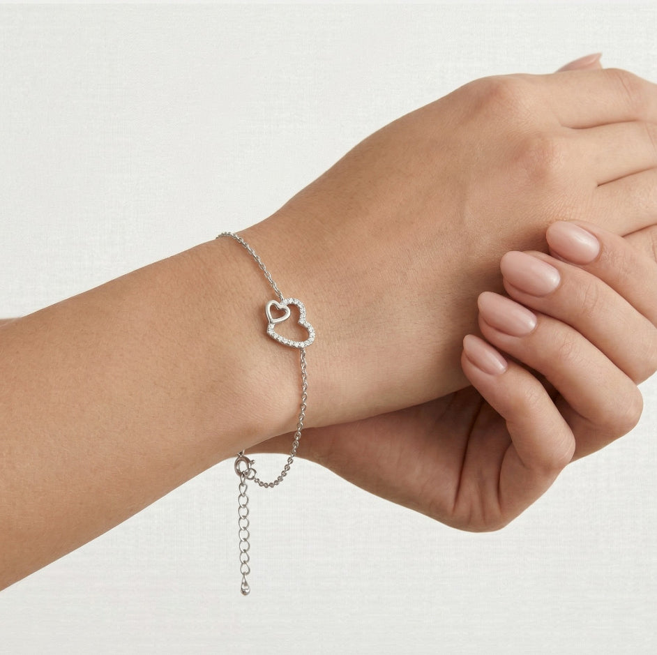 Silber-Armband mit zwei Herzen und Zirkonia