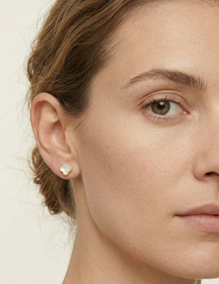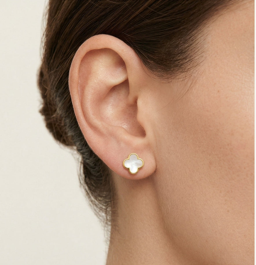 Gelbgold-Ohrstecker mit Perlmutt-Kleeblatt