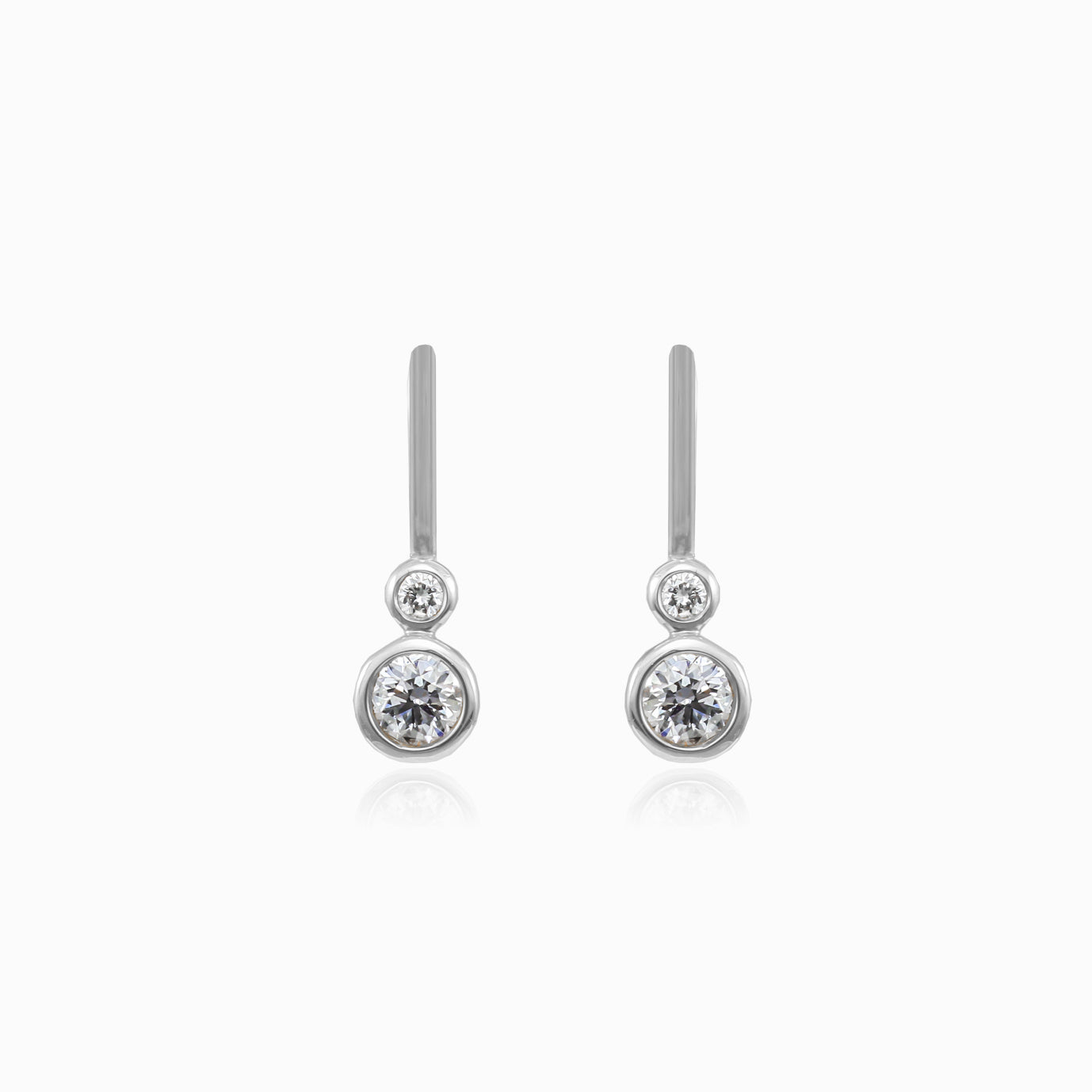 These graceful drop earrings embody elegance and brilliance in perfect harmony. Crafted from 14kt white gold with round diamonds VS1 G 0.29ct in a refined bezel setting they offer radiant sparkle and timeless sophistication. Designed with a secure lever back closure they add effortless luxury to both everyday wear and evening style.