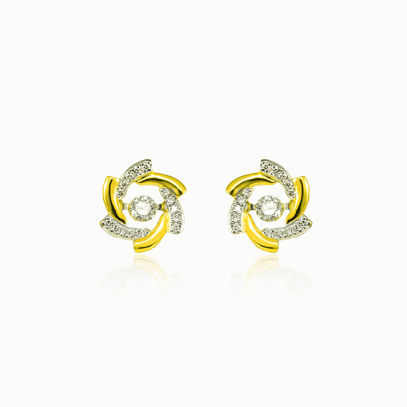 These graceful earrings capture the delicate beauty of a blooming flower. Crafted from 14kt yellow gold with round diamonds SI1 H 0.17ct in prong settings the design features a dangling diamond at the center that moves with gentle light. Completed with a secure stud pousette closure they bring an elegant and feminine touch to every occasion.