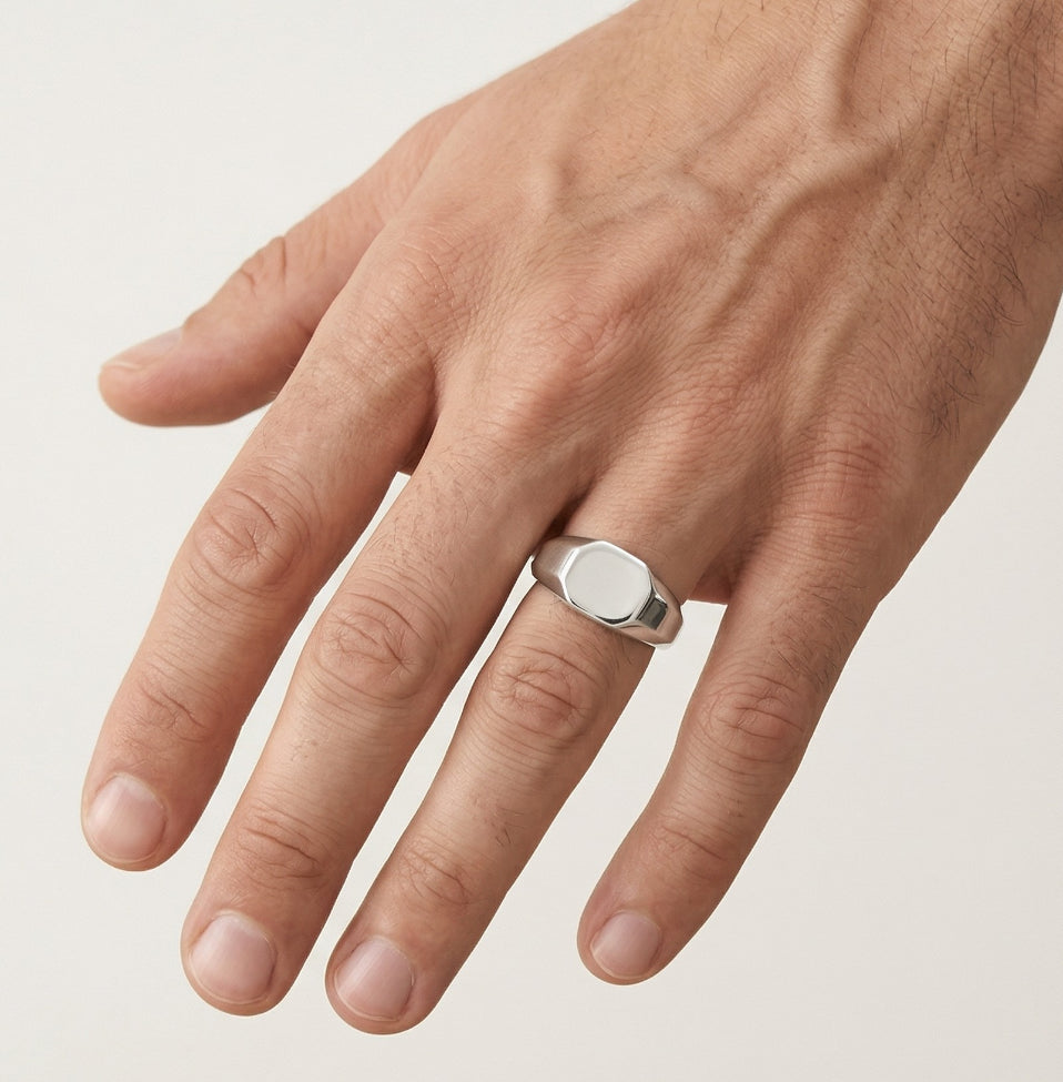 A smooth sterling silver mens band created with a classic streamlined design that offers effortless sophistication. Its polished form makes it a versatile piece suited for both daily wear and refined occasions.