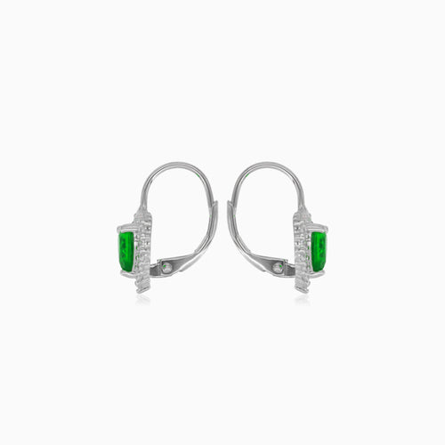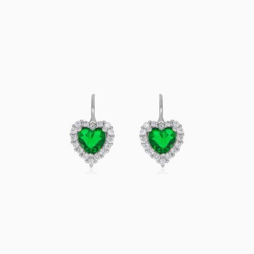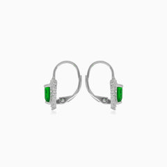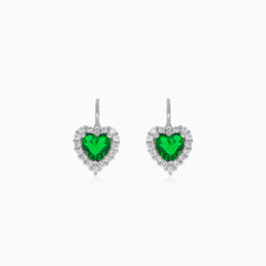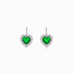 Add a touch of romance with these captivating silver earrings featuring a heart-shaped synthetic emerald accented by sparkling cubic zirconia, all elegantly secured with a lever back closure.