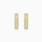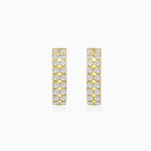 Casual 14K yellow gold earrings decorated with two lines of cubic zirconia.