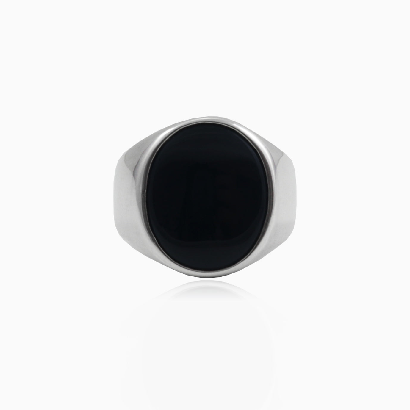 A sleek sterling silver men ring featuring a round cut onyx in a smooth bezel setting. The polished band emphasizes simplicity and elegance, allowing the central stone to stand out with a modern and minimalistic style. A timeless piece for everyday wear or special occasions.