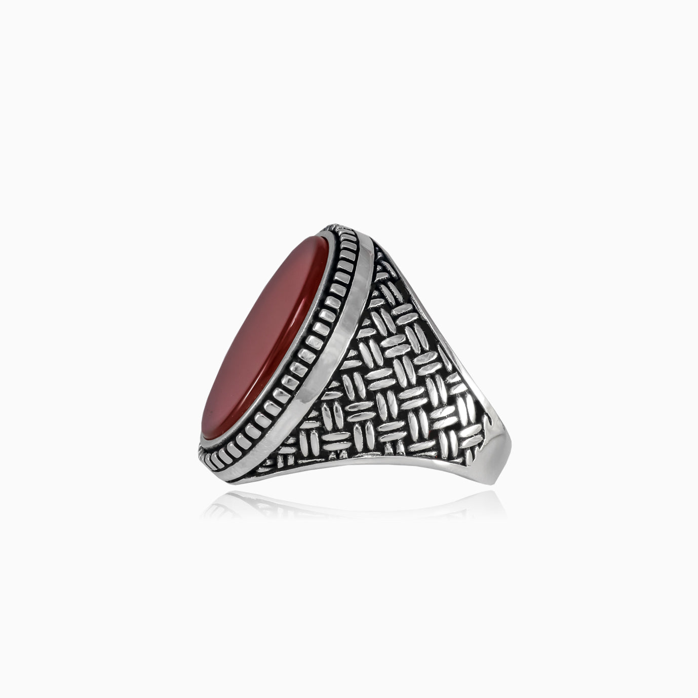This striking men ring blends bold design with natural warmth. Crafted from polished silver it features an oval agate held securely in a smooth bezel setting highlighting the stone’s rich glow and organic character. Its substantial form offers a confident masculine presence while remaining comfortable for daily wear making it a meaningful piece for those who appreciate strength and individuality.