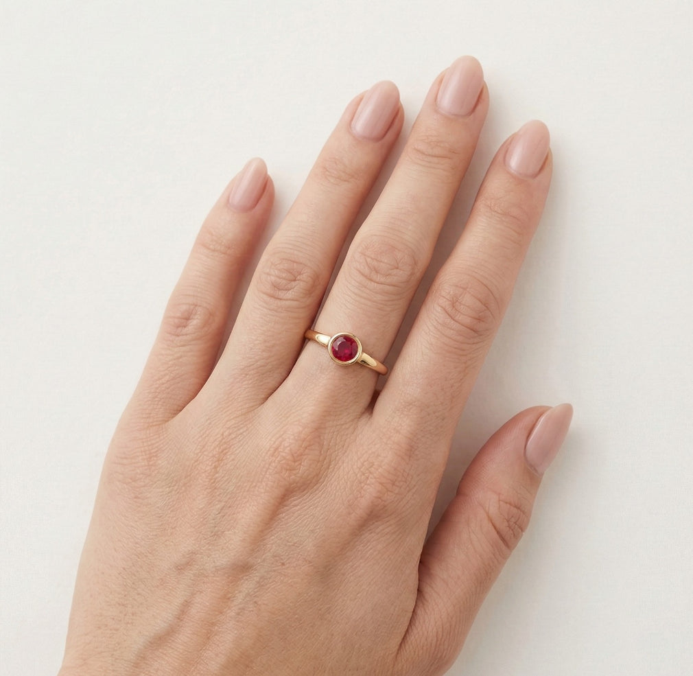 Rose gold ring with round ruby