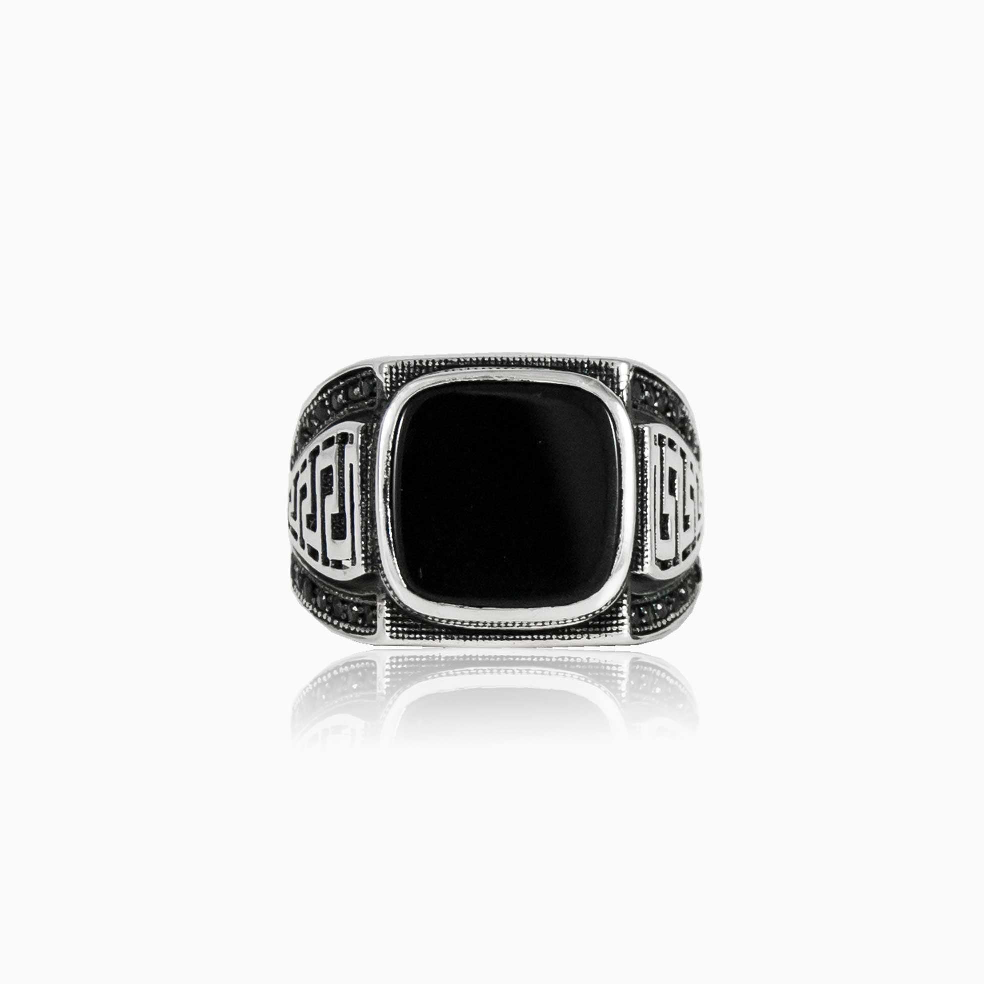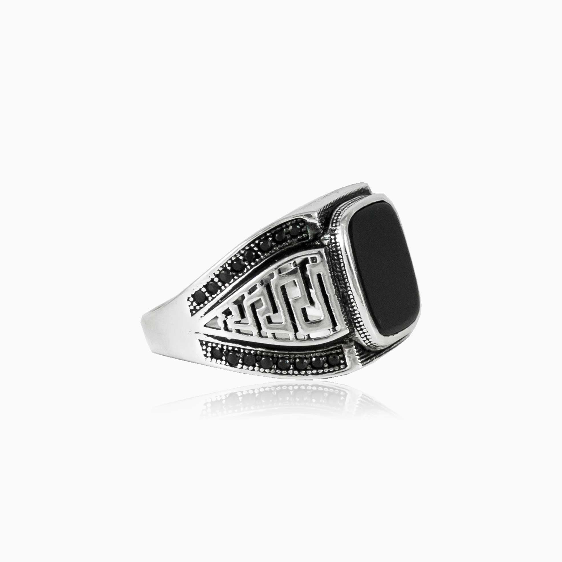 Pánský prsten se vzorem řeckého klíče a onyxem
