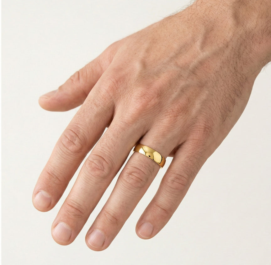 Anillo de boda clásico de oro amarillo con alto pulido.