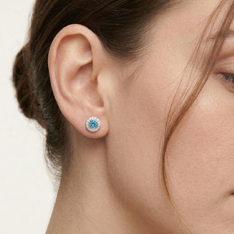 Tyto elegantní náušnice z bílého zlata zdobí zářivý safír obklopený diamantovým halem. Precizní zpracování přináší sofistikovaný třpyt a nadčasovou eleganci pro každý den i slavnostní příležitosti.