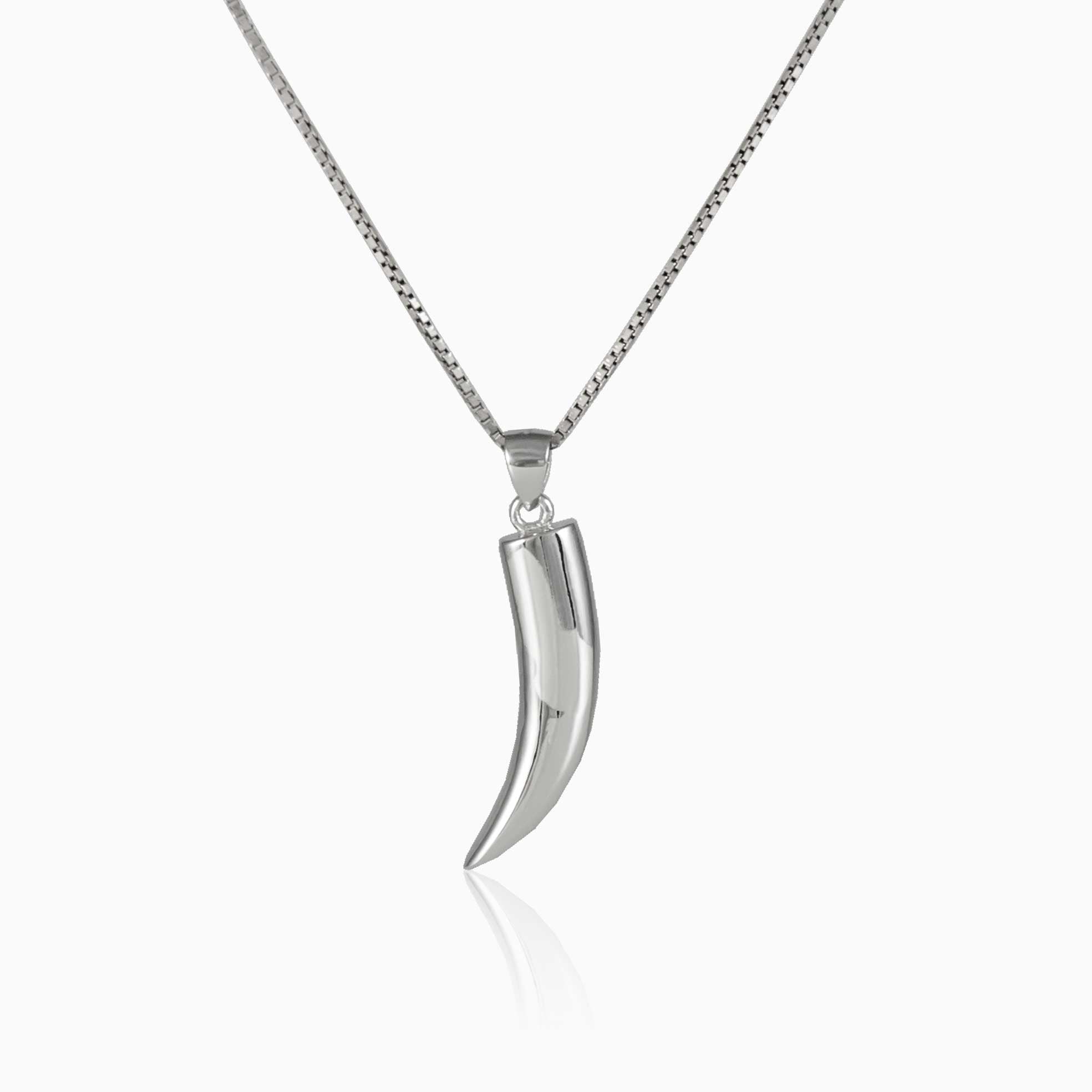 This powerful pendant captures the spirit of strength and courage. Crafted from sterling silver it features a sleek tigers tooth design that symbolizes protection and determination. A bold piece made for those who embrace confidence and individuality.
