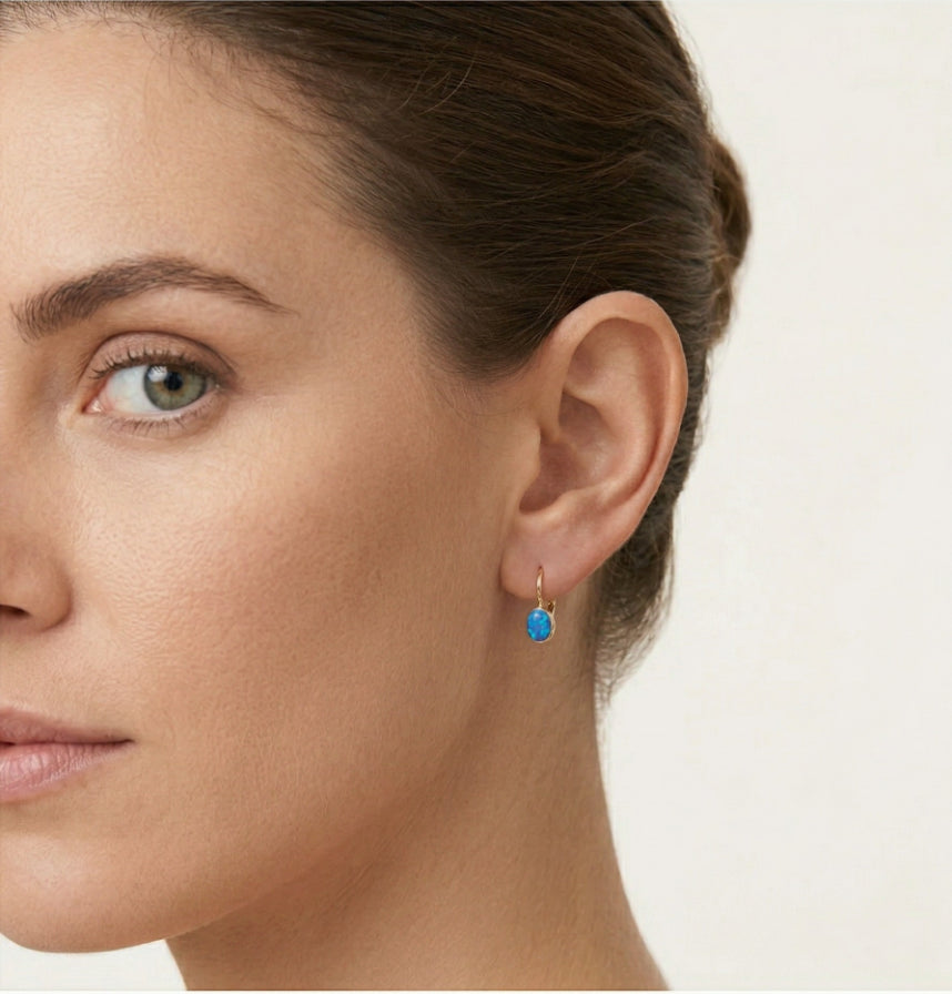 Pendientes de oro con ópalo azul sencillo