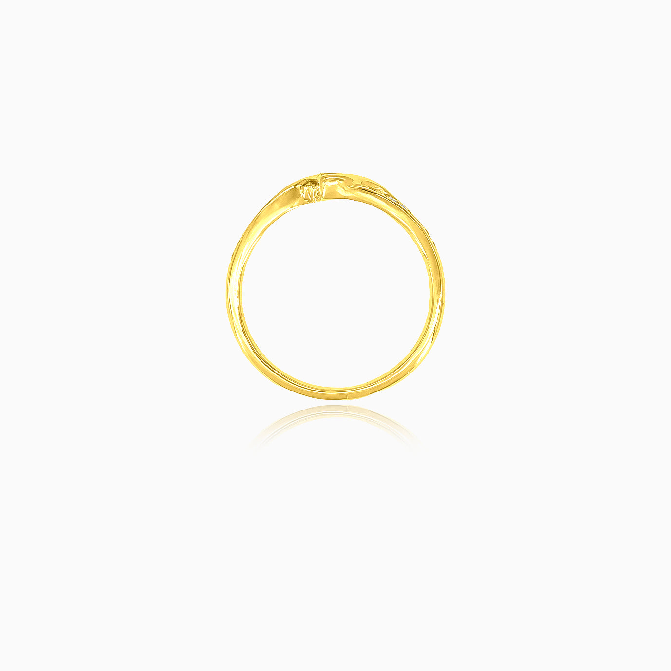 This enchanting engagement ring embodies romance and refinement. Crafted from 14kt yellow gold it features a round diamond at the center in a graceful semi bezel setting complemented by sparkling side stones secured with four prongs. With a total of SI1 H 0.16ct diamonds this design blends modern elegance with timeless sentiment making it a perfect symbol of lasting love and devotion.