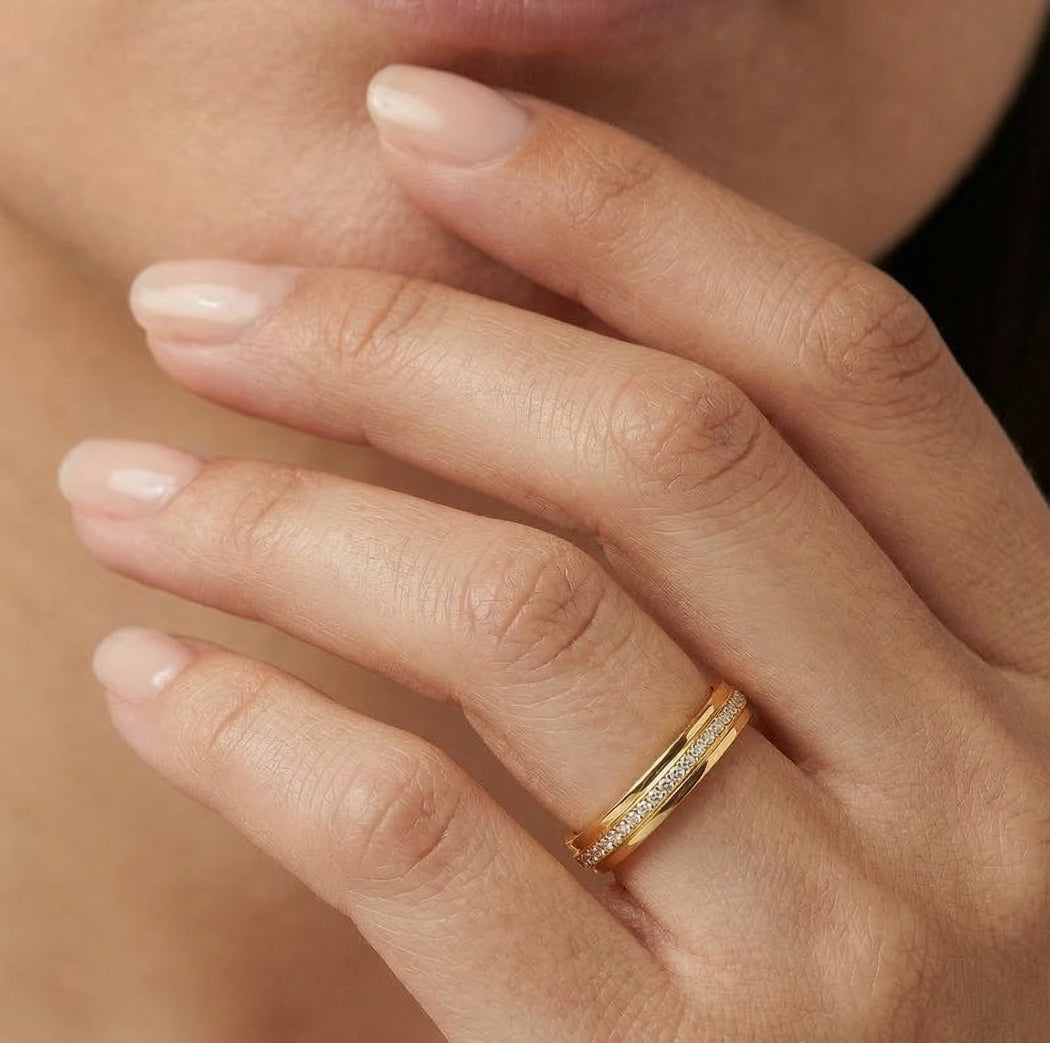 Nadčasová sofistikovanost se snoubí s jednoduchostí v tomto prstenu z vysoce leštěného 14kt žlutého zlata bez kamenů, který působí rafinovaně a klasicky.